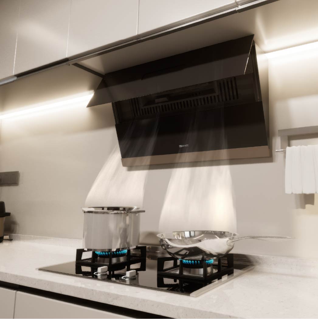 เมื่อบานปิดช่องดูดควันปิดสนิทจะช่วยให้ห้องครัวดูเรียบร้อยและมีสไตล์ยิ่งขึ้น