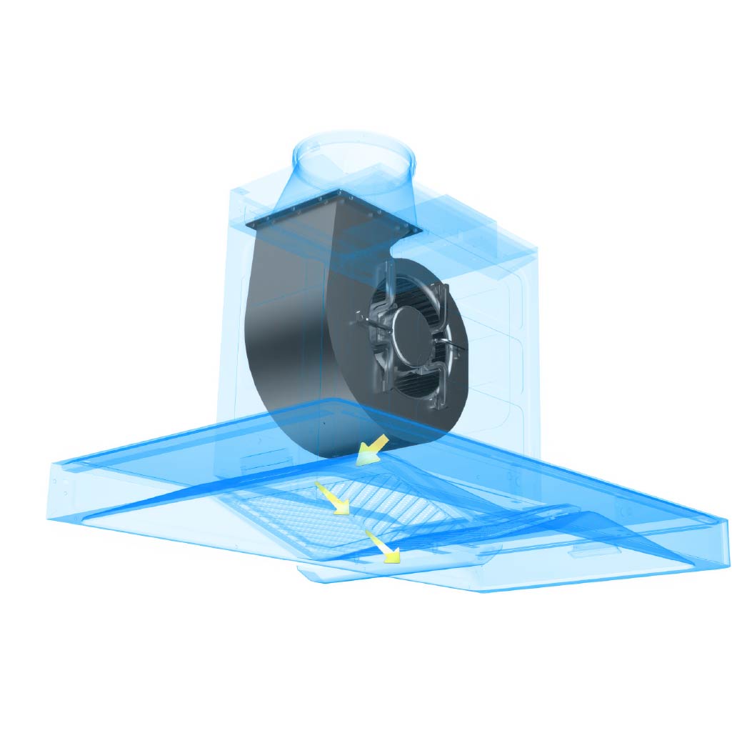 เข้ากับห้องครัวได้อย่างลงตัว เครื่องดูดควันล้ำสมัยที่ออกแบบ โดยเน้นการใช้พื้นผิวโค้งมนในหลายจุด